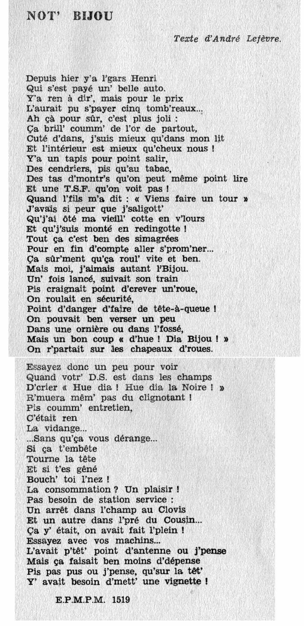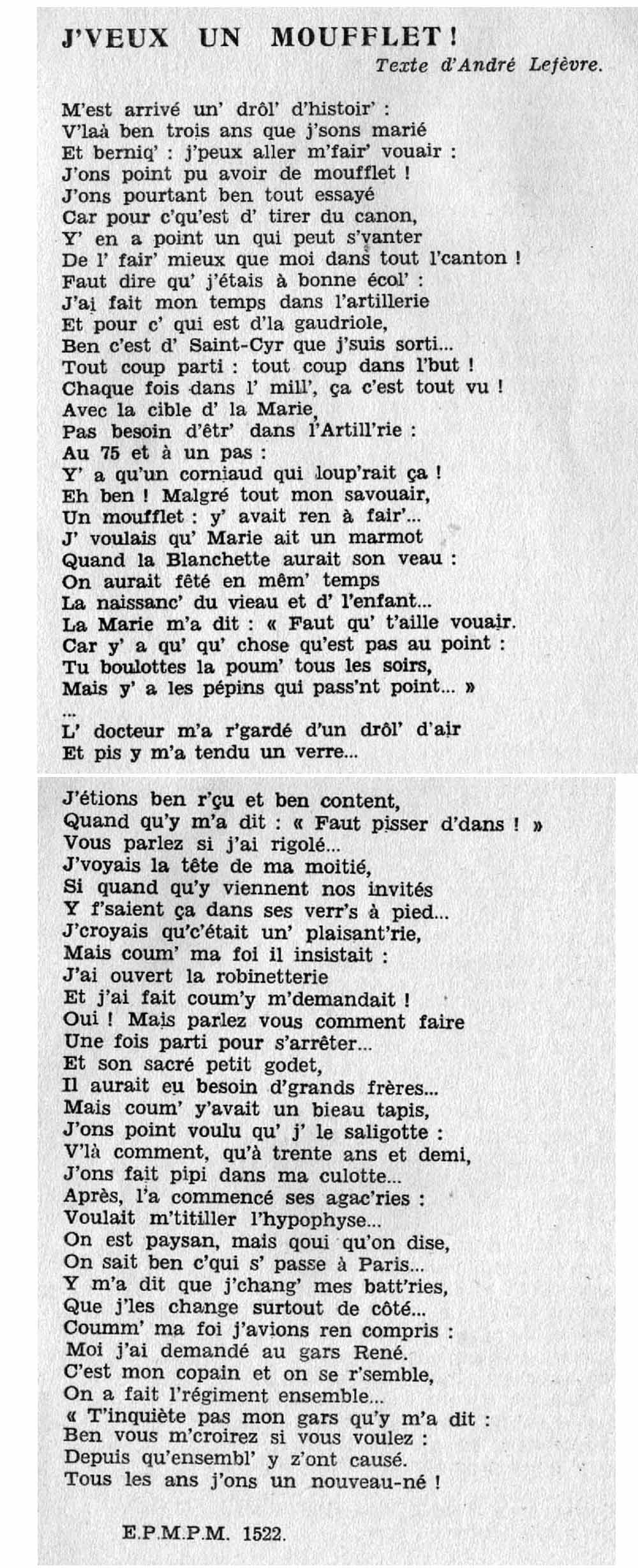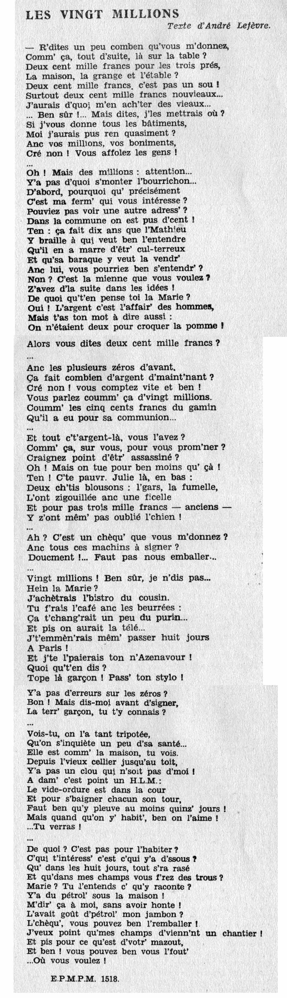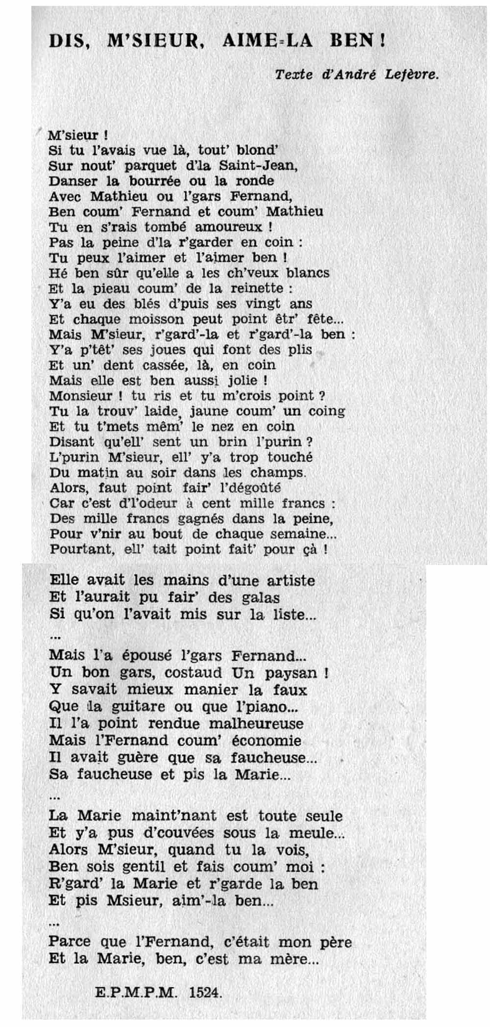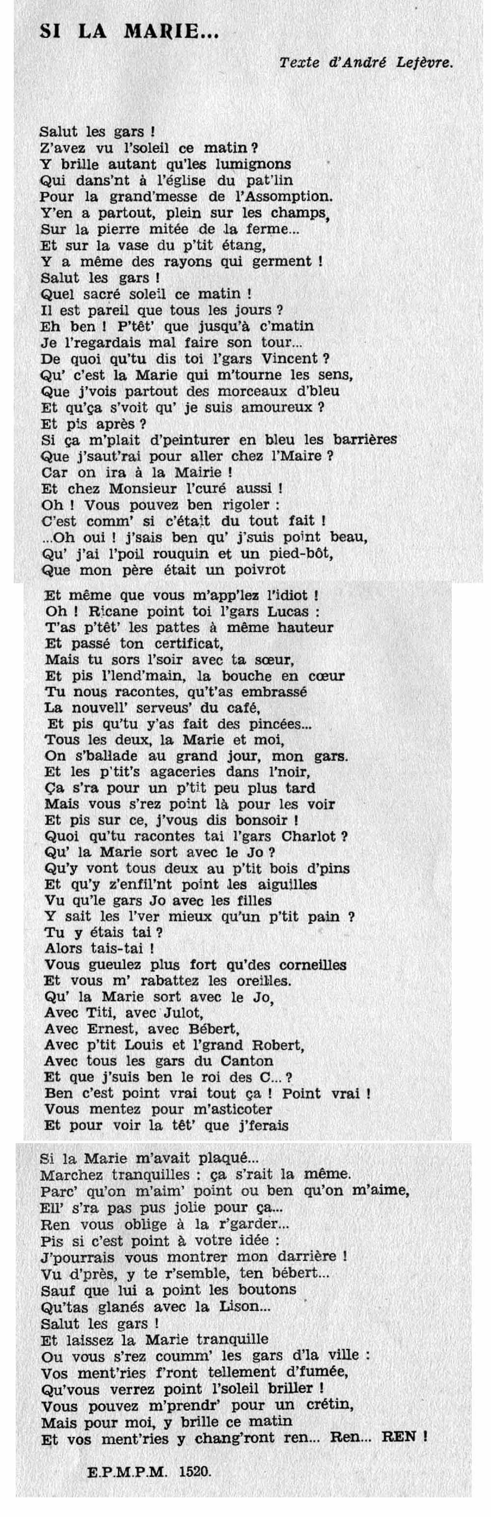 PAYS DU BERRY 12 poèmes et monologues de ANDRE LEFEVRE Créés et enregistrés par Patrick RAYNAL Mon gars Bouche cousue Quoi qu'tu dis mon cousin Un tour à Paris Les 20 millions Not' Bijou Si la Marie... Y sont r'venus ! J'veux un moufflet ! Faut point en rire Dis m'sieur, aime la ben... La jeune fille de la basilique |